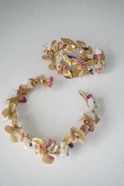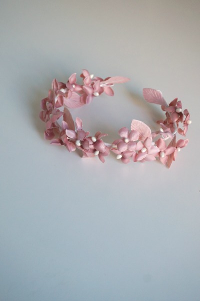 In very sweet tones of pink, nude, old gold and white, this porcelain crown is ideal to put on or under the veil if you are a veiled bride.