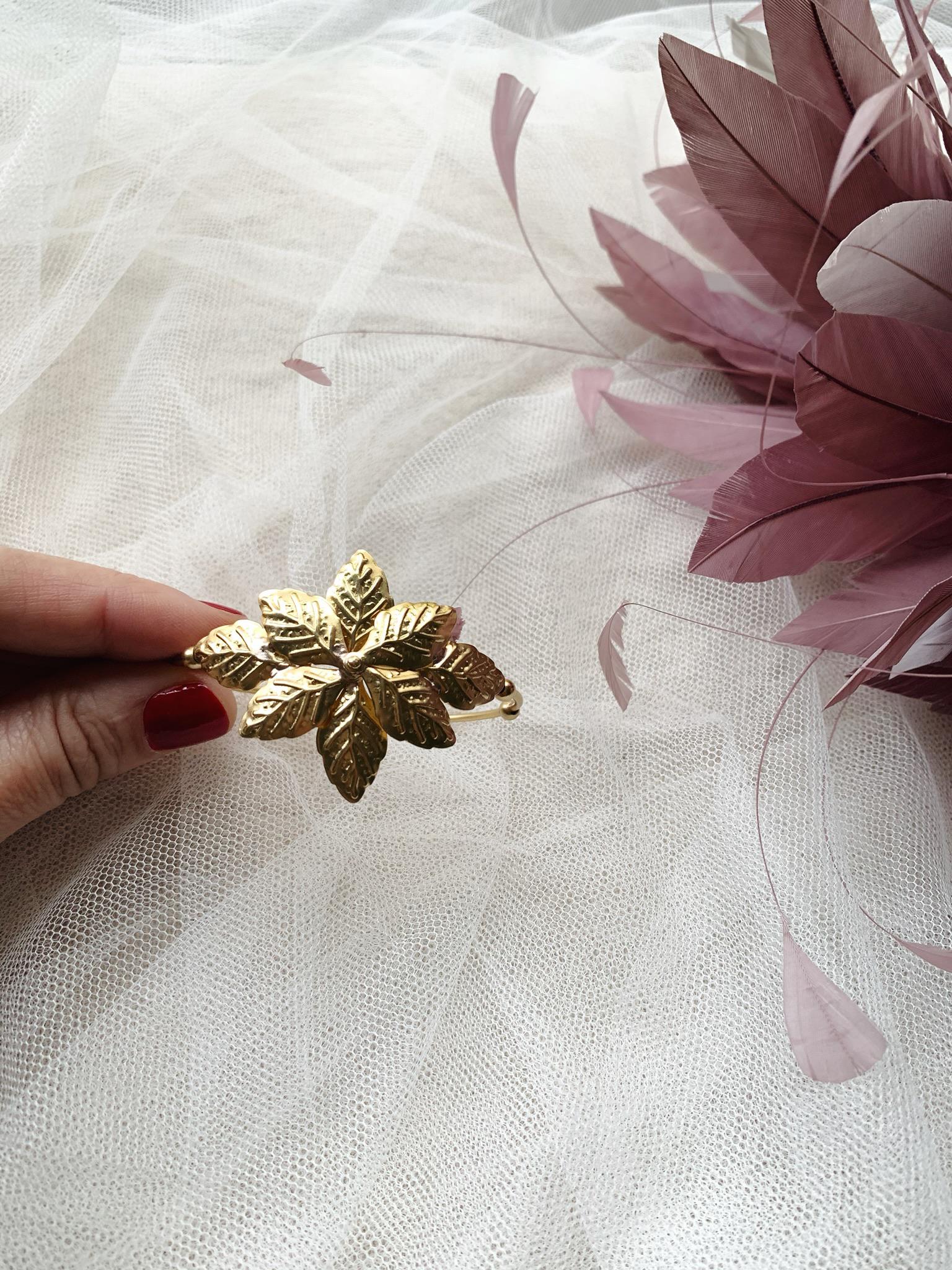 La pulsera Flor Astrea de bronce chapado en oro con un precioso diseño de inspiración egipcio