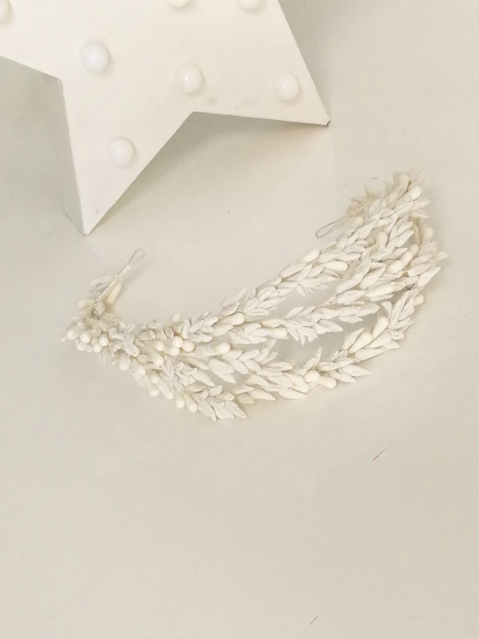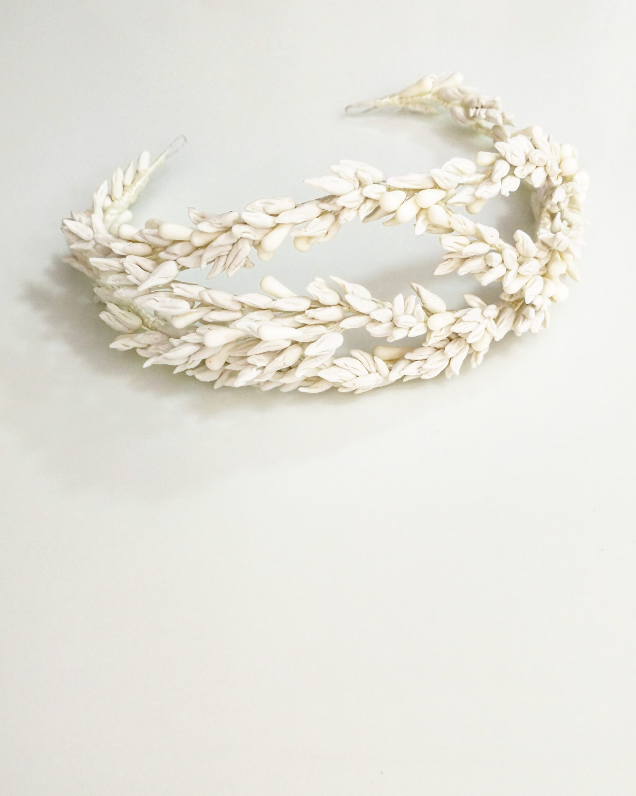 Tocado o tiara de semillas silvestres, sin definir, en 3 filas . Ideal para colocar atrás con el velo, o delante a modo tiara