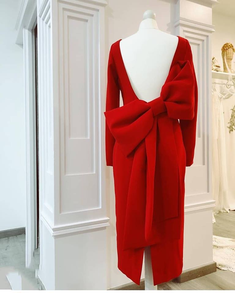 Vestido de crepe con maxi lazo en la espalda y manga larga